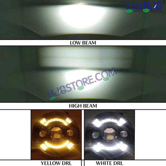 HJG New 90W Projector Ultra Wide 7 Inch Headlight Assembly C-256 90W White LED Headlight New Model Projector Lens Headlight Assembly for Royal Enfield | 80-100W CREE/Osram LED Chip Multi color White/Yellow Compatible with Royal Enfield, Jeep, Thar, Gypsy